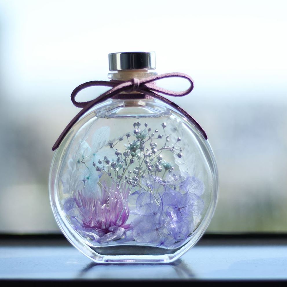 - 乾燥花是鮮花自然乾燥後的產物,隨水分揮發,花形將縮小,色澤也會改變,質感成脆硬且易掉落,但仍散發出天然花材的香味。