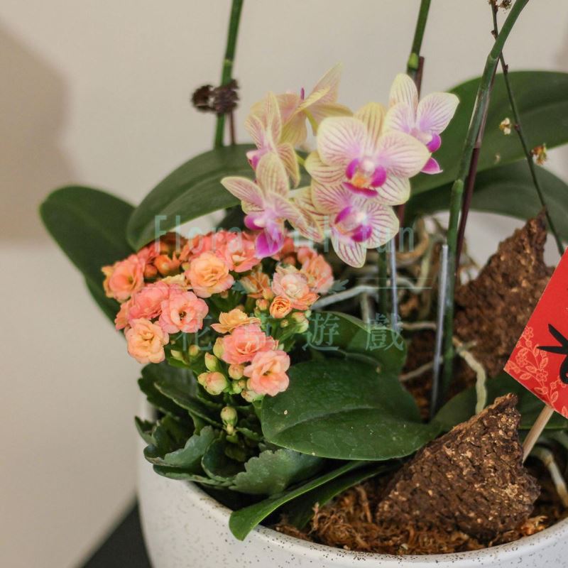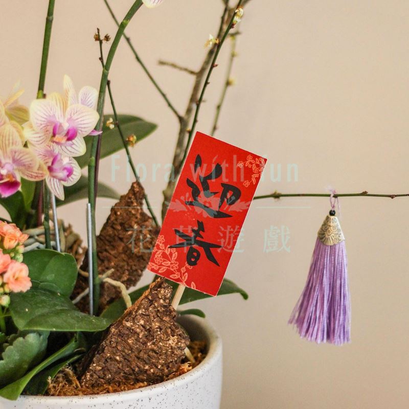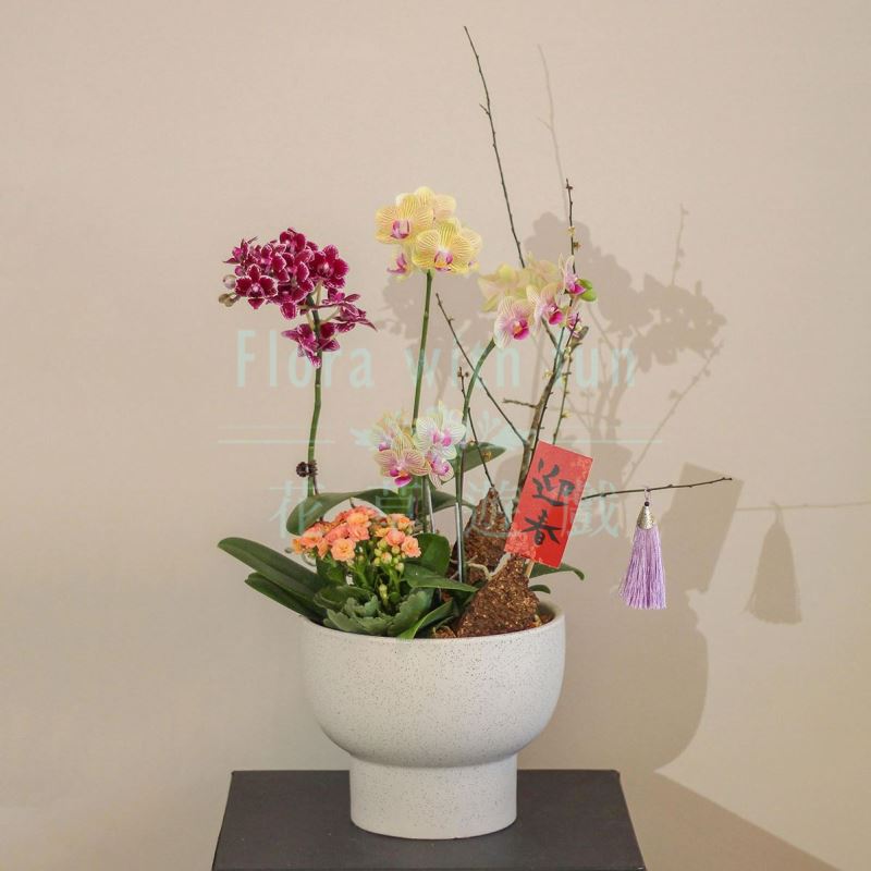 ※花材可能依照實際採購到的花種來設計蘭花盆,但會事先與顧客溝通、確認,售出即無法退換貨。